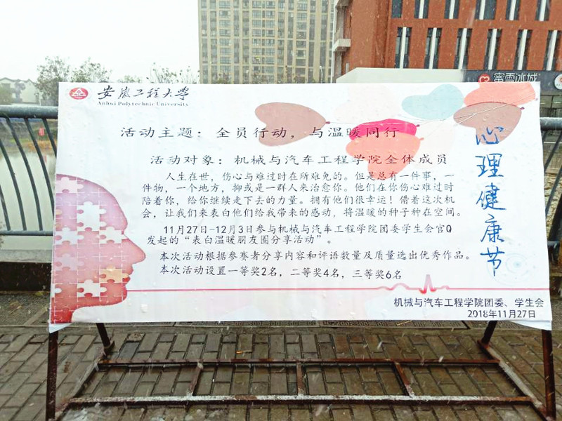 经过前期的宣传,同学们兴致很高昂,每个人都有一肚子想要和大家分享的故事,无论是开心的、感动的或者令人遗憾的。每个人都有自己的喜怒哀乐与悲欢离合,如何在高兴时与人分享,如何在低沉中让自己重新振作,活动主办方让同学们在学院的官方QQ发起12.5心理健康节“表白温暖”的活动。