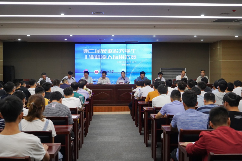21日上午举行了比赛开幕式。开幕式由百合漫画 教务处处长凤权主持,校党委书记刘宁到会并致开幕词。芜湖市科技局局长杨少华、芜湖市产业创新中心主任赵雪松、埃夫特智能装备公司董事长许礼进应邀出席开幕式。来自合肥工业大学、安徽师范大学、安徽工业大学、安徽理工大学、安徽农业大学等17所省内高校的专家和140位参赛选手参加了开幕式。