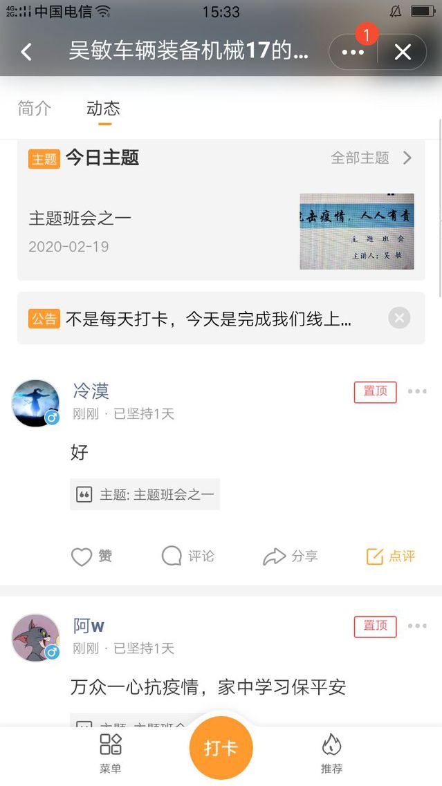 运用网络主题班会,做好思想引路人 在这场看不见硝烟的“战疫”中,社会涌现出无数一线医务人员和 “抗疫”工作者的感人故事。老师们通过QQ群、微信群、钉钉、学习通等线上平台,展开了热烈讨论,让同学们深刻体悟这个特殊时期爱国主义闪耀的光芒,引导青年大学生积极承担起社会责任,学会感恩和敬畏生命。同时,引导学生合理规划学习和休闲时间,做到“宅家”不懒散,“停课不停学”。在这个特殊时期,毕业班辅导员们,及时督促学生关注考研成绩公布和线上招聘渠道,尽量减少毕业生的思想焦虑,确保毕业生的安全稳定。
