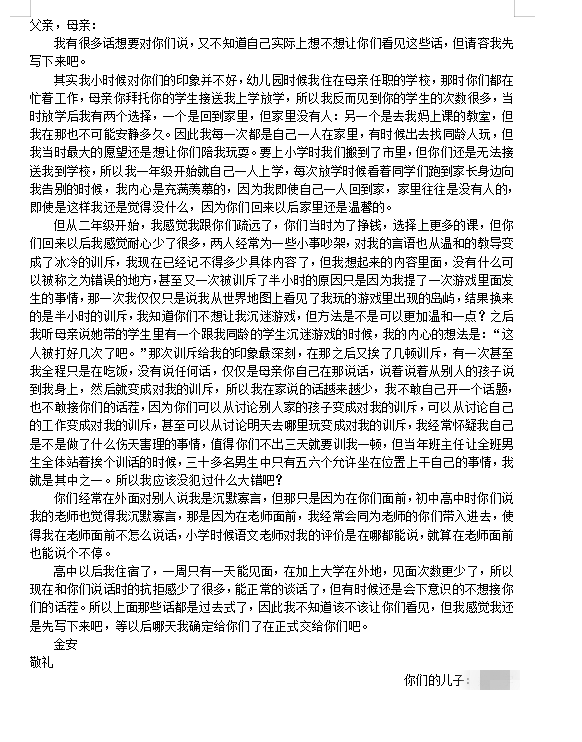 本次活动设立“我想对您说”、“为父母分担家务”、“铭记心底的爱”三个主题,鼓励学生与父母倾心交流沟通,用言语、行动、文字等方式勇敢表达出对父母的感恩之情,用视频、音频、信件、图片等形式进行呈现。活动筹划阶段,院学生会心理部通过微信公众号、微博等自媒体进行宣传,500余名学生报名参赛并提交了作品,同学们通过各种形式表达了对父母的爱、用实际行动感恩父母的付出。学校心理育人工作室组成评委会对提交的作品进行评选,遴选出优秀作品并给予表彰。