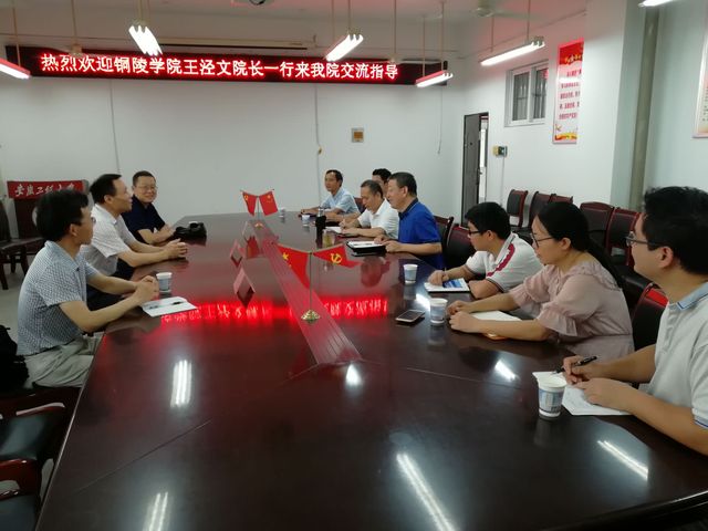 8月7日上午,铜陵学院机械工程学院院长王泾文教授一行来百合漫画 材料科学与工程学院就专业建设和实验室建设等方面进行了深入交流,学院党委书记王勇智、副院长朱协彬和学院部分教师参加会议。朱协彬主持了会议。