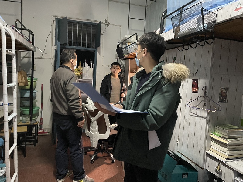 为更好了解学生思想状态,充分发挥学生宿舍育人功能,排查宿舍安全隐患,加强宿舍学风建设,12月2日下午,机械工程学院(人工智能学院)组织开展冬季学生宿舍大检查,重点检查学生宿舍安全、卫生和学风建设情况。学院党委书记伊长文、党委副书记李文江、何志恒带领辅导员分三组开展检查。
