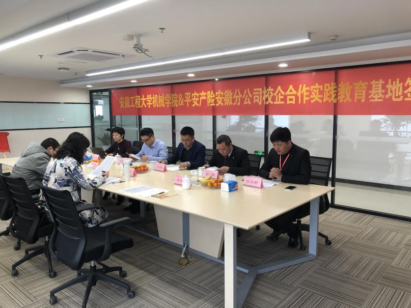 2020年12月11日,机械工程学院(人工智能学院)与平安产险安徽分公司就合作共建实习(训)基地事宜在平安产险安徽分公司芜湖中心支公司总部隆重举行了签约揭牌仪式。学院党委副书记李文江、副院长潘家保、车辆工程系主任张荣芸,平安产险安徽分公司相关负责人参加仪式。