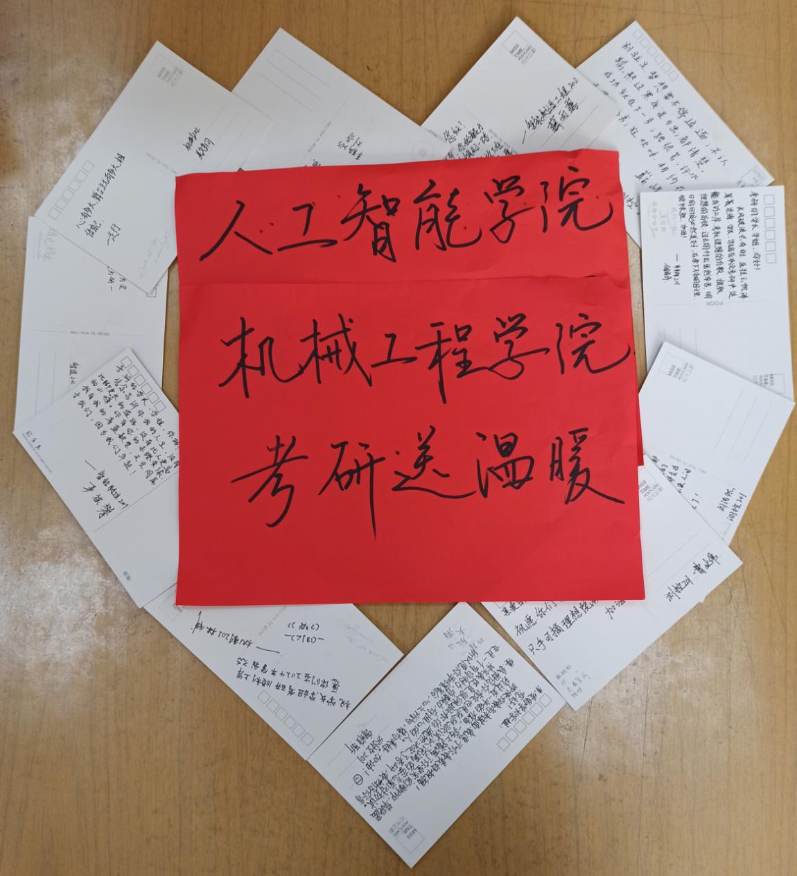 活动前期,新生辅导员张璐、从宏超指导2020级学生用心为学长学姐书写了524份考研祝福语。“今年一‘研’为定,明年定为‘研’一”“心有多大,舞台就有多大,相信自己,一定行!”“祝学长、学姐考研顺利上岸,愿你们在2024年等我。”“亲爱的学长学姐,祝愿你们象牙塔下梦成真,只手可摘理想院校的星辰。”“亲爱的学长学姐,即使你我尚未谋面,我愿予你我最好的祝福!......既然决定了考研,我相信你肯定是一个有自制力,有毅力,有恒心的人......愿你心之所向,皆为美好!加油!”......一句句温馨的祝福语为考研学子带来了温暖,同时也激励着低年级学子奋发有为。有的学生志愿者还在祝福卡上画上了生动形象的卡通画。随后,程雷老师组织院团委学生会学生骨干为考研学子准备了考研爱心文具袋。每个爱心文具袋配备了专用答题卡铅笔、圆珠笔、橡皮、套装专业绘图仪器等考试用具及一份祝福卡。