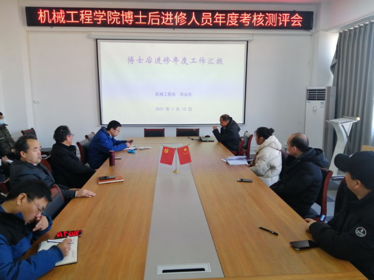 1月13日下午,机械工程学院在A815会议室召开了博士后进修人员年度工作考核汇报会。学院党政主要领导、教授委员会成员、全体博士后进修人员参加会议,会议由副院长王建平主持。