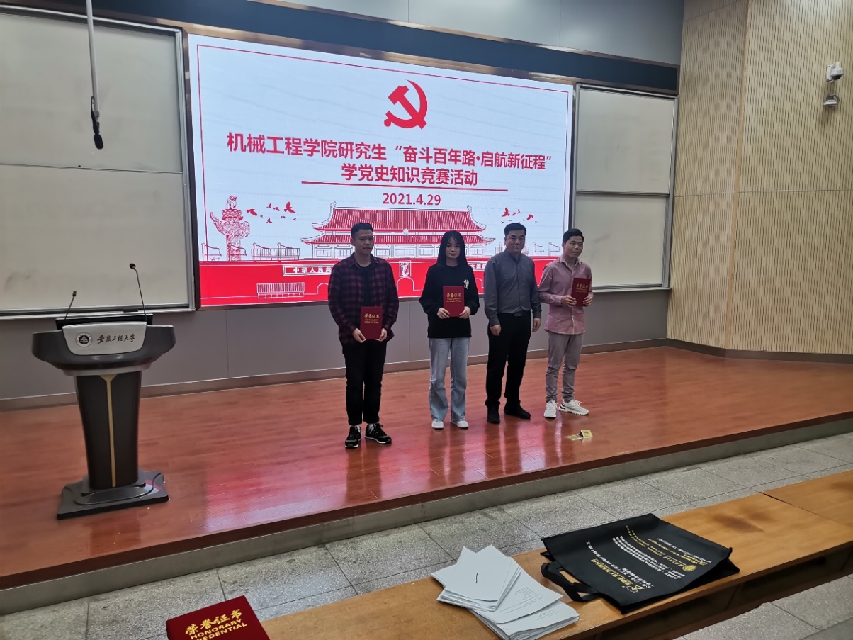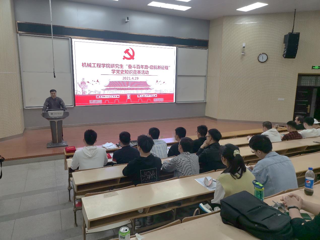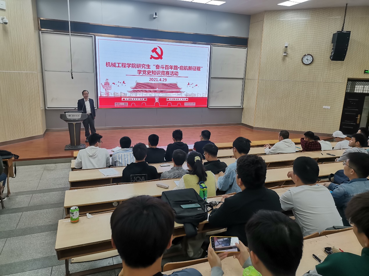 为引导研究生了解党的光辉历史,进一步加强党史学习教育, 4月29日,机械工程学院(人工智能学院)举办了研究生“奋斗百年路·启航新征程”学党史知识竞赛活动。学院党委书记伊长文,副院长王建平,正处级组织员朱尚玉等出席了活动。活动由研究生党支部书记鞠锦勇老师主持。