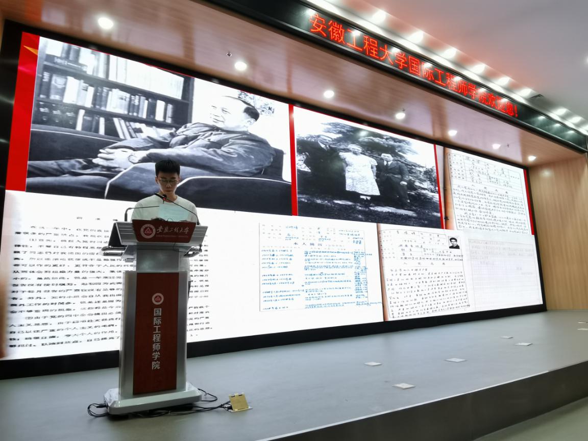 致敬革命先辈,传承红色基因。百年间,多少先辈们筚路蓝缕矢志不渝,捧着心中烛火,守护热爱的中国。机器人专业学生党支部党员伍梓涵深情朗读钱学森等老一辈科学家们的入党申请书、入党志愿书、转正报告等,带领大家一起感悟老一辈科学家们的初心理想,致敬先辈,立志接续奋斗再出发。