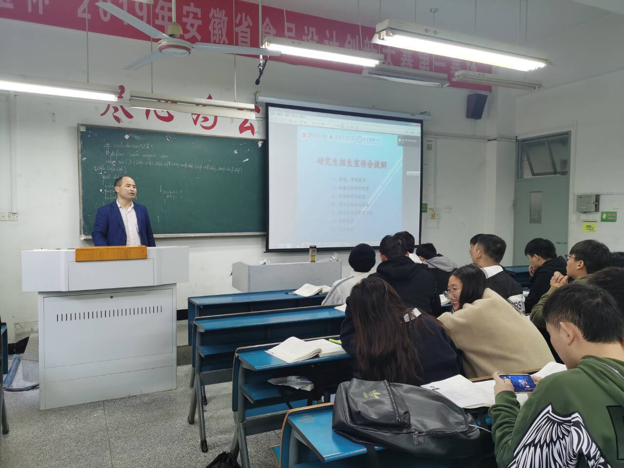 招生宣讲工作开展前,学院精心制作了宣讲PPT,详细介绍了2022年国家相关的考研政策、我院在研究生培养方面的特色和优势,学院学位点、学科设置、专业方向、师资力量、科研平台、奖助体系、研究生就业等内容以及学校所在地芜湖的区位优势。2022年学院新增人工智能、智能制造两个交叉学科学位点招生。为提升宣讲效果,在今年招生宣传过程中,改变仅由招生宣传工作组老师开展宣讲工作、解答学生疑惑的做法,邀请各院校的老师现身讲解,参与到我院的招生宣传工作中,有效增加了学生对我院研究生招生专业的认同感。