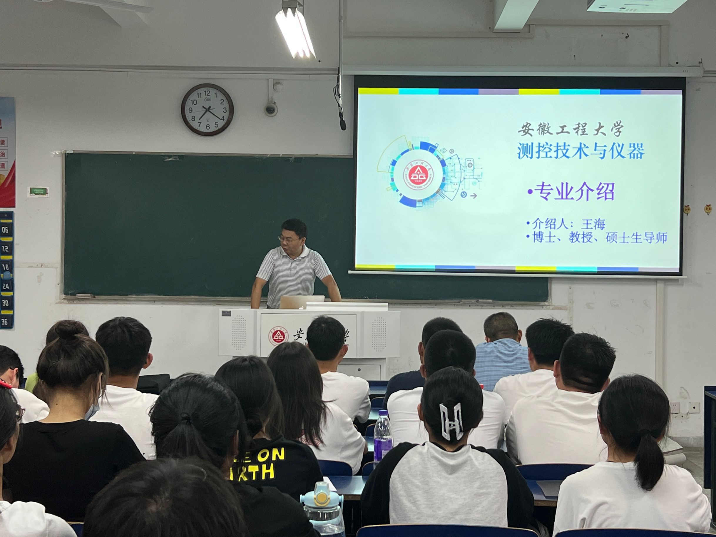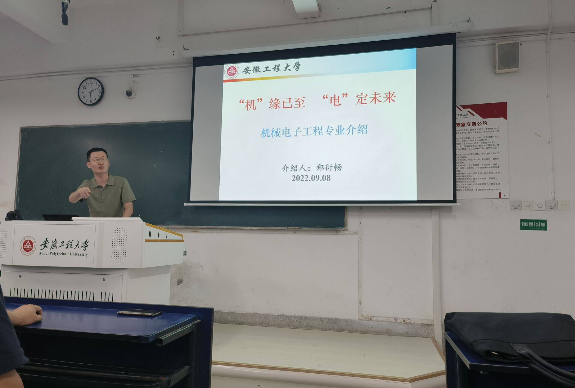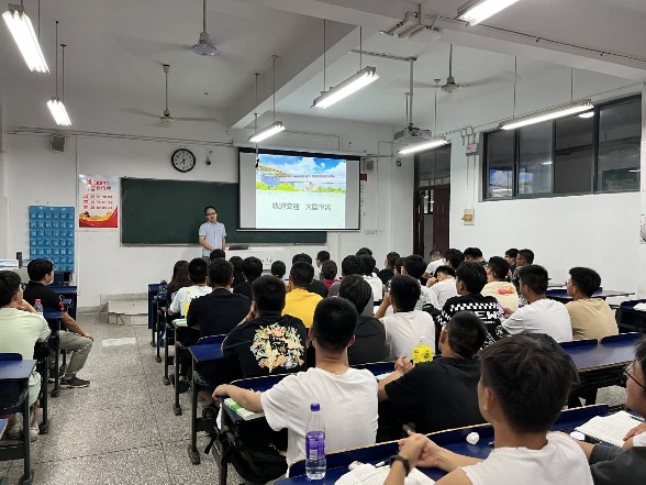 仪器科学与技术系党支部书记郑衍畅以“‘机’缘已至 ‘电’定未来”为题拉开了专业介绍的序幕。作为“新”芜湖人,他首先向同学们介绍了大美芜湖,不仅包括美食、美景,还着重介绍了芜湖市的人才引进政策与优待人才政策。他呼吁同学们好好学习,早日成才,欢迎未来共同芜湖建设。紧接着向同学们介绍了机械电子工程专业的创办历史、专业标志性成果、人才培养成果,让同学们感受到专业的信心和兴趣。他最后向同学们表达了未来大学生活的美好祝愿和谆谆教诲。