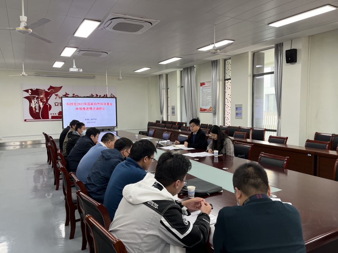11月25日下午,科技处副处长王宗乾、自然科学管理科副科长陈静一行到机械工程学院调研指导2023年国家自然科学基金申报工作。部分国家基金项目申报教师代表参加了会议,会议由副院长潘家保主持。
