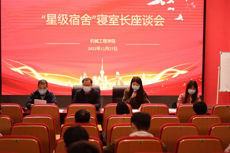 为激发寝室长在学生自主管理中的作用,落实学校“三全六专”育人工作,加快构建“安全卫生、学风优良、和谐文明”的宿舍新态彰显“星级宿舍”的榜样示范效应1127日,机械工程学院在国际工程师学院小报告厅组织召开了“星级宿舍”寝室长座谈会。机械工程学院党委副书记秦广虎、部分辅导员以及全体“星级宿舍”寝室长参会。会议由辅导员何琳主持。