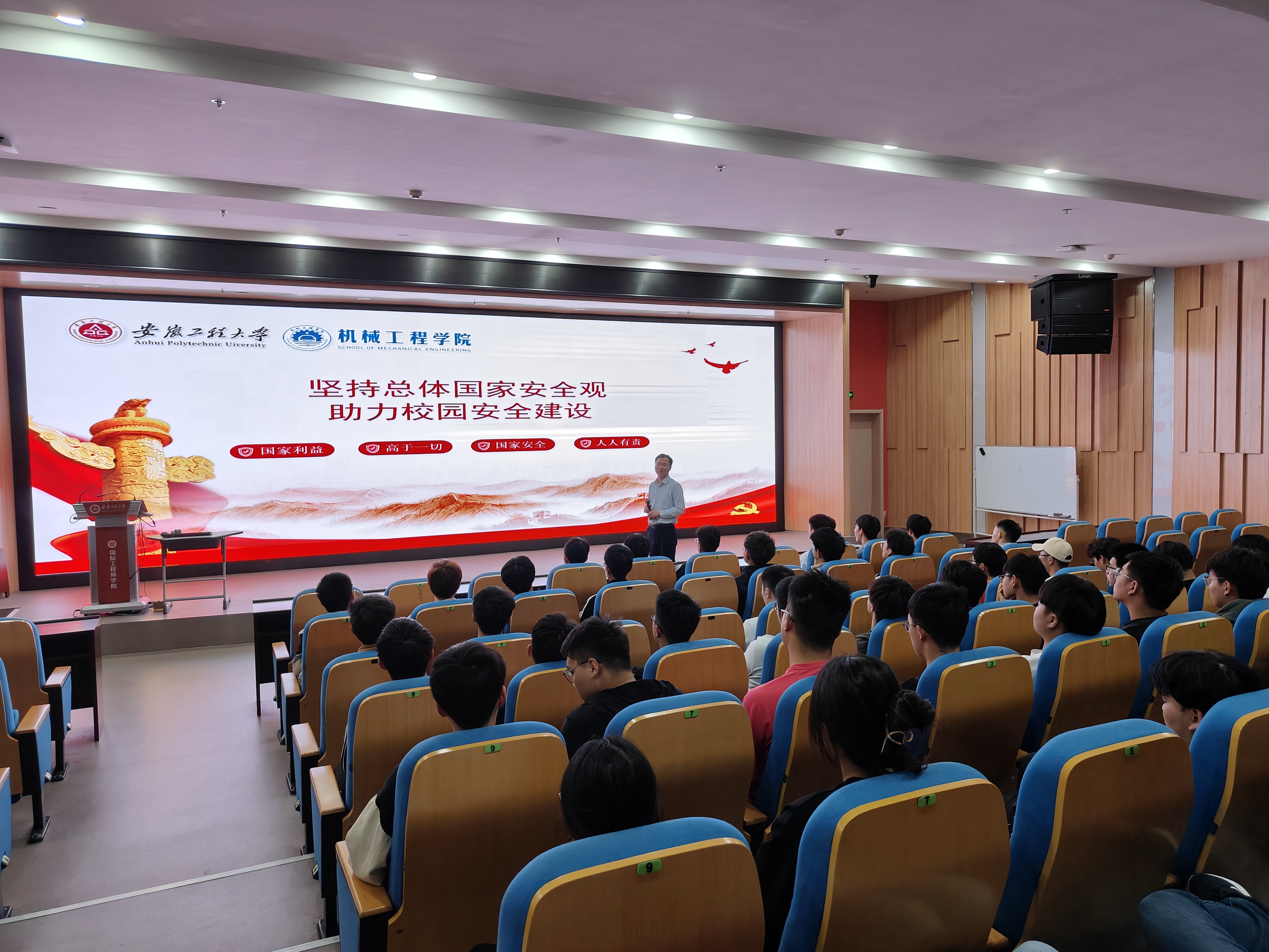 为营造“国家安全,人人有责”的校园氛围,引导当代大学生铸牢维护国家安全、校园稳定的思想根基,提升思想认知,促进思想与行动上“正”起来。415日,机械工程学院在国际工程师学院大报告厅开展了“坚持总体国家安全观,助力校园安全建设”主题教育活动。机械工程学院党委副书记秦广虎及本科生辅导员姚伟波、何琳、时慕天、苏天一参加此次活动。
