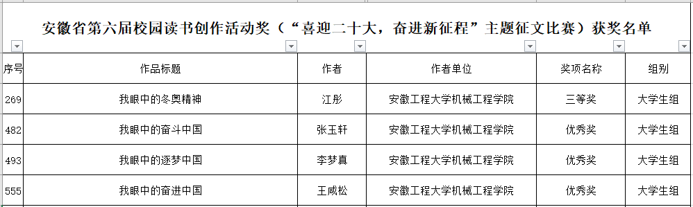 近日,由安徽省教育工委、省教育厅、省人力资源和社会保障厅、省文化和旅游厅、省新闻出版局、团省委共同主办的安徽省第六届读书创作活动评选结果公布,我院从宏超老师撰写的征文《我们这十年》荣获一等奖,一名学生荣获三等奖,三名学生荣获优秀奖。