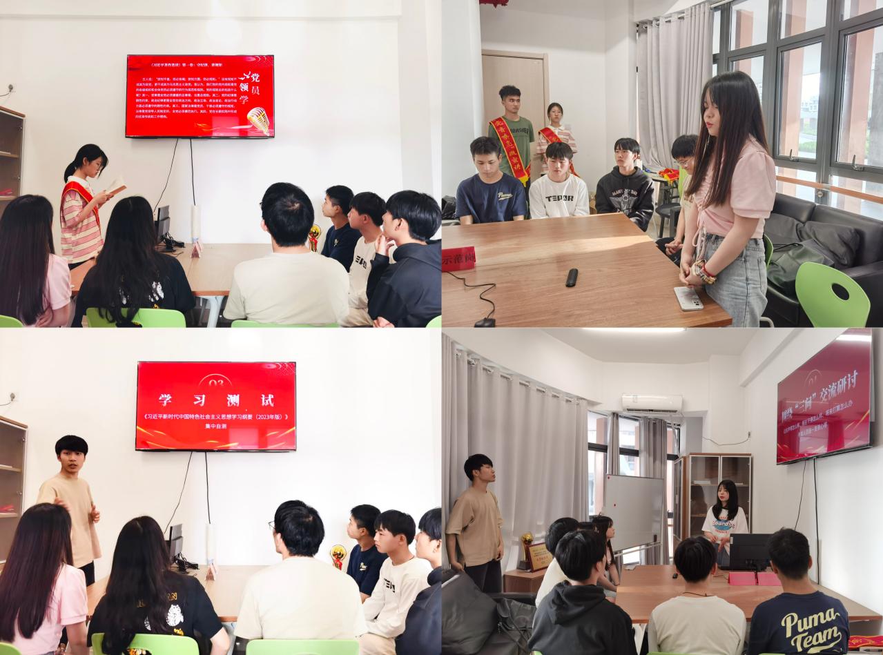 随后,交通工程专业学生党支部书记苏天一组织开展“主题教育应知应会”学习测试,以学习效果检验促进真学真懂、笃信笃行;机制专业学生第二党支部书记李萨萨则带领学生聚焦“三问”结合个人学习和生活实际展开热烈交流研讨。
