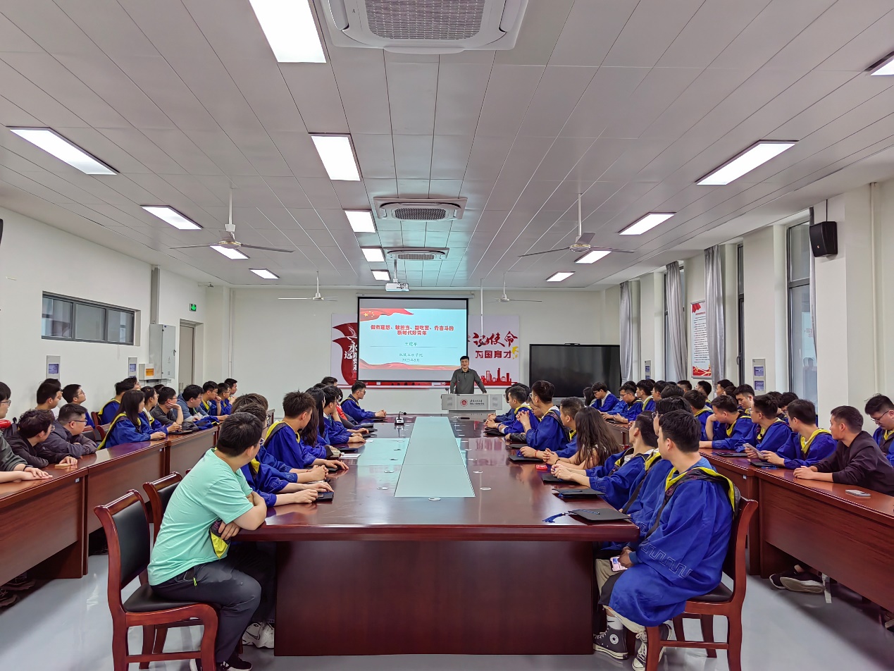 为深入开展学习贯彻习近平新时代中国特色社会主义思想主题教育,524日,机械工程学院院长王建平在国际工程师学院实训楼3-1-204会议室,以“做有理想、敢担当、能吃苦、肯奋斗的新时代好青年”为主题,结合毕业生即将面临的机遇和挑战,给研究生2023届毕业生上了一堂生动的党课。