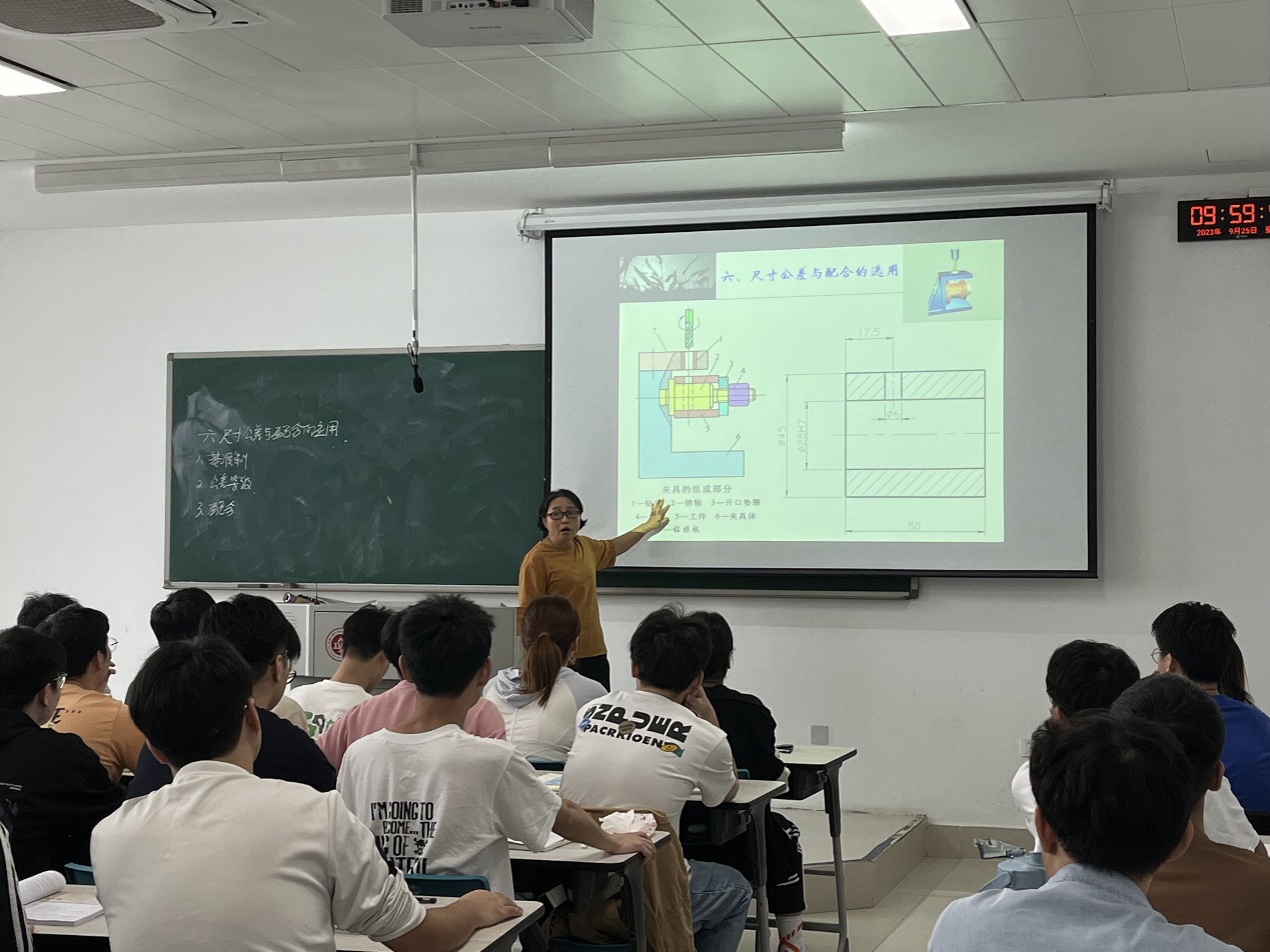 根据学校《关于推荐优秀教师开展2023-2024学年第一学期“金”彩一课示范课活动的通知》要求,2023年9月25日,机械工程学院组织开展“金”彩一课示范教学观摩活动。本次示范课程由赵敏老师讲授,机械工程学院、人工智能学院、电气工程学院10多位中青年教师参加了本次课程观摩。