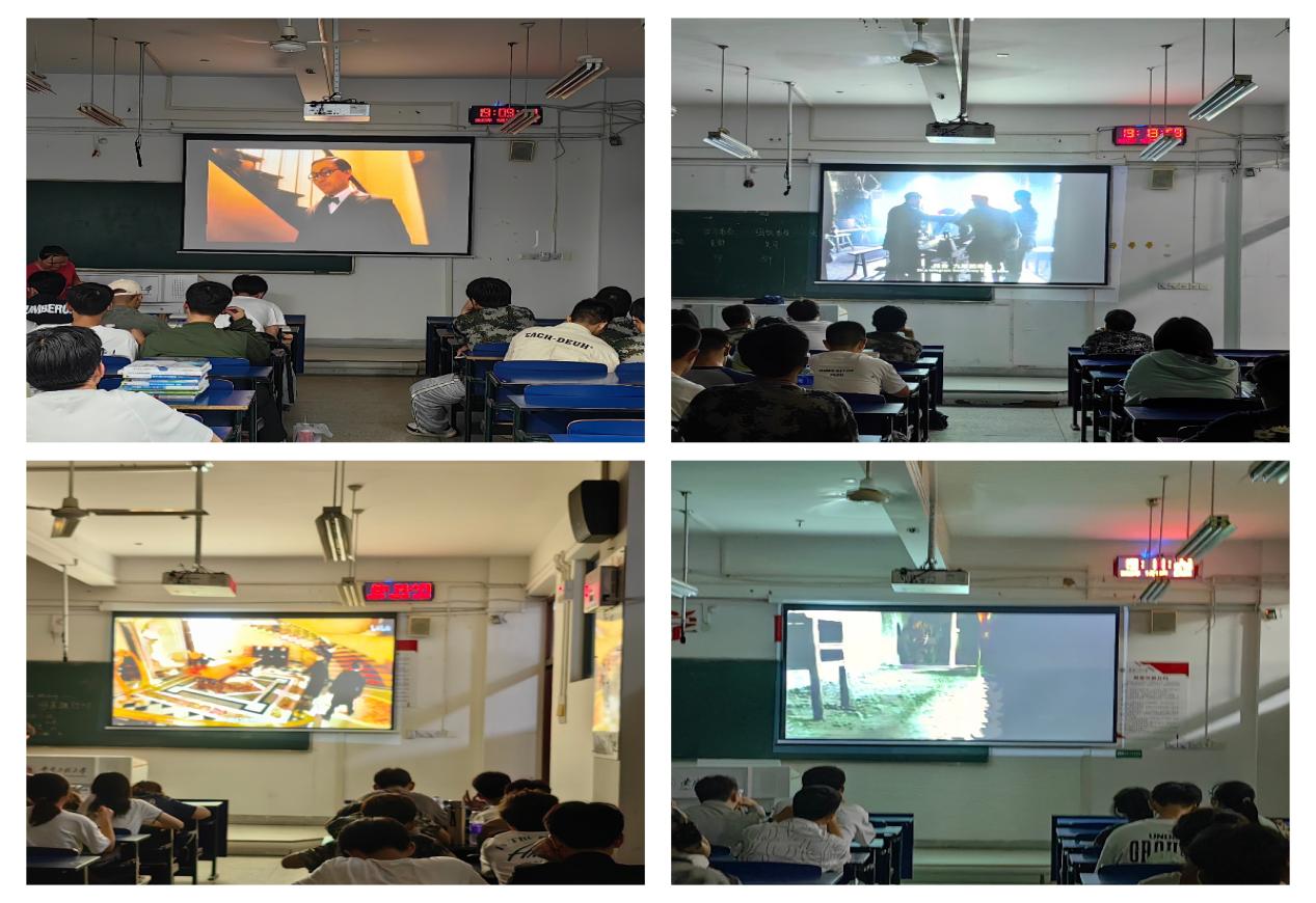 集中观看一部红色电影。为增强2023级新生对“四史”内容的感性认识,10月10日晚,学院按专业班级组织同学们观看红色革命影片。此次观影活动,学院准备了《建国大业》、《建党伟业》、《建军大业》、《横空出世》、《血战湘西》《我的1919》等多部革命教育题材影片供同学们选择。在荧屏光影中,通过中国共产党人的光辉英雄形象,使同学们感受到“四史”的时间脉络,了解到中国共产党人的丰功伟绩,体会到幸福生活的来之不易和实现中华民族伟大复兴时代使命的重任在肩。