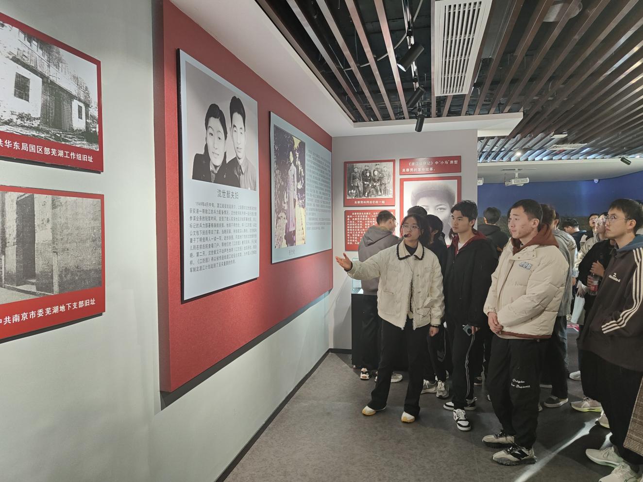 在讲解员的带领下,全体成员先后参观了“渡江第一船”“中国船舶简史”“红色村”三个主题陈列馆。期间,同学们认真听讲,重温了1949年“北平和谈”相关历史,了解了芜湖这片红色沃土上革命先辈们的故事及芜湖地下党组织和支前英模人物在渡江战役期间对统战策反、情报侦察、支前拥军等工作做出的积极贡献,仿佛跨越时空,看到了当年渡江战役前敌我态势、西梁山血战等相关情况以及我军勇往直前横渡长江的场景。同学们看着三山激战、繁昌解放、南陵解放和芜湖解放等事件介绍,心怀敬畏、缅怀英烈,再次深刻感受到中国共产党的伟大,更加坚定听党话、跟党走的理想信念。