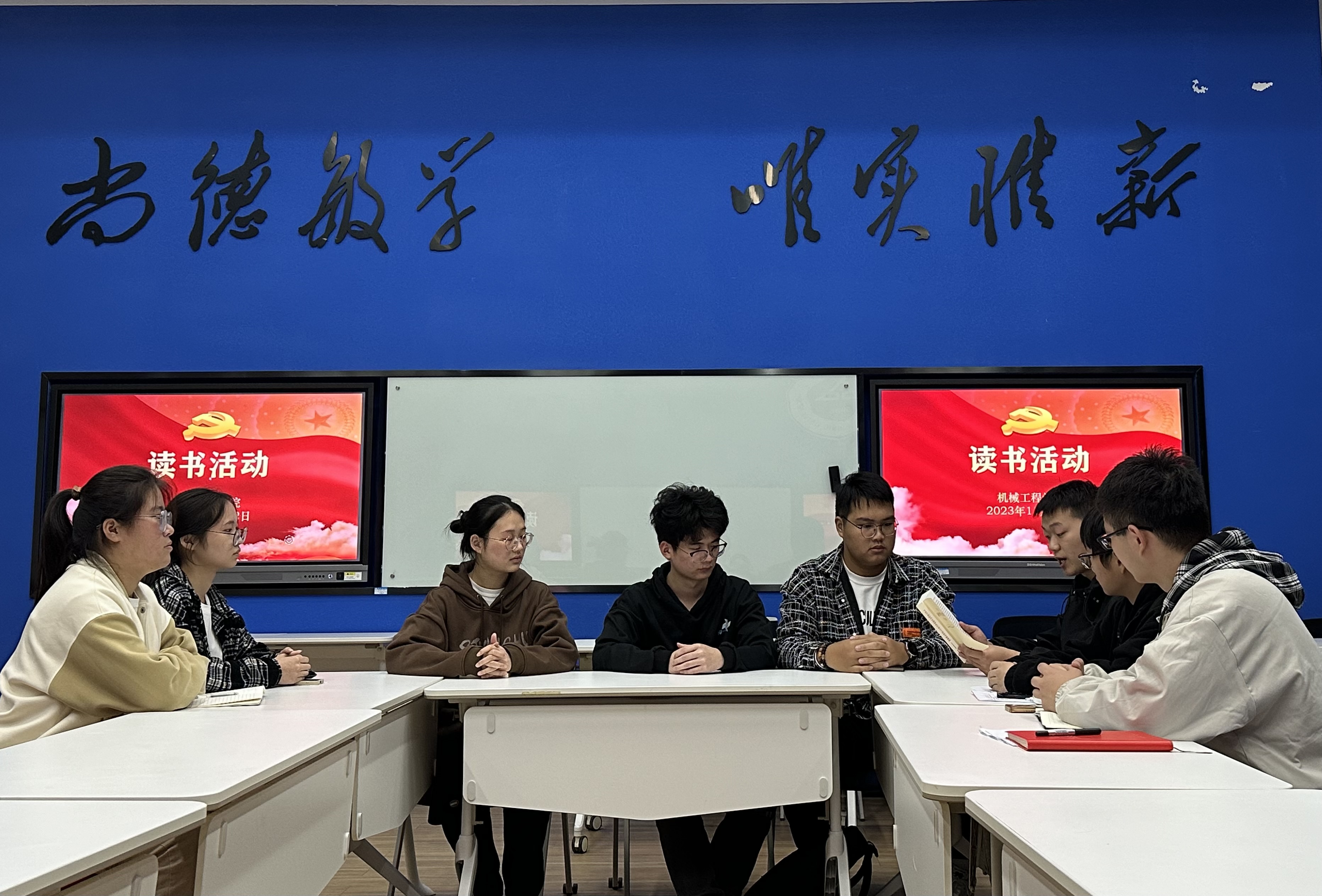 会后,学院团委读书小组开展了读书活动。机制222钱荘荘领读了《习近平新时代中国特色社会主义思想专题摘编》部分内容。曾令帅表示,领袖的魅力、真理的力量、思想的光辉深深触动人心,作为一名学生干部,要带头学、带头讲、带头做,不负习近平总书记对青年的殷切期望。