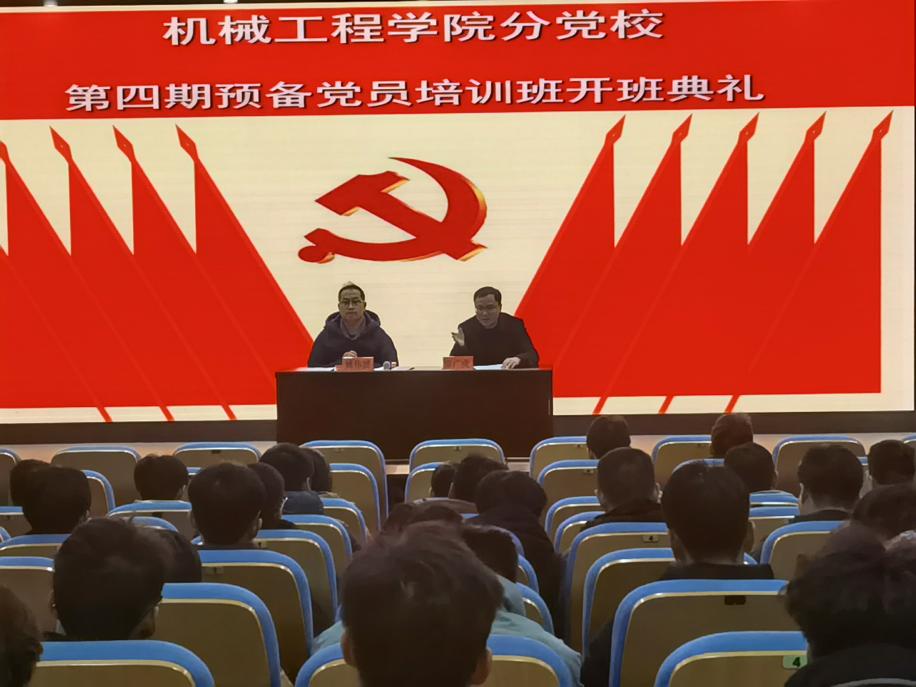 为深入学习贯彻习近平新时代中国特色社会主义思想和党的二十大精神,加强对预备党员的教育管理,1月8日,机械工程学院分党校举行第四期预备党员培训班开班仪式。学院党委副书记秦广虎、培训班班主任姚伟波及全体学员参加了开班仪式。开班仪式由姚伟波主持。
