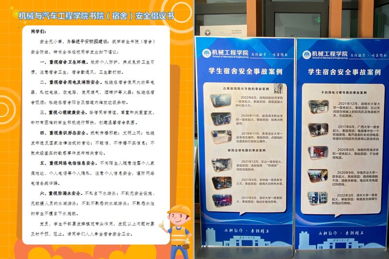 学院精心谋划,制作学生书院(宿舍)警示案例展板开展警示教育;制定学生书院(宿舍)安全宣传倡议书和宿舍检查评分细则并发放到宿舍;成立学生社区自我管理功能型党支部,发挥学生党员在学生自我管理中的先锋作用;摸排学生宿舍情况,建立重点关注台账,点面结合多渠道开展安全教育工作