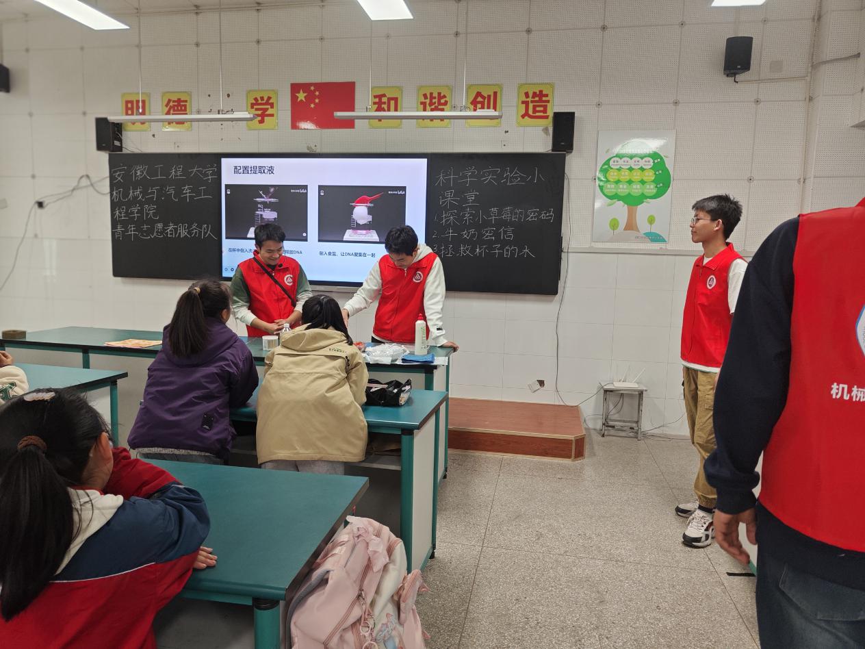 活动当天,志愿者们与小朋友们准时相约在实验室。第一个实验是“探索小草莓的秘密”,志愿者们向小朋友们科普了DNA的有关知识,然后便开始准备提取草莓的DNA,看着杯中慢慢产生的絮状物,小朋友们兴致满满。