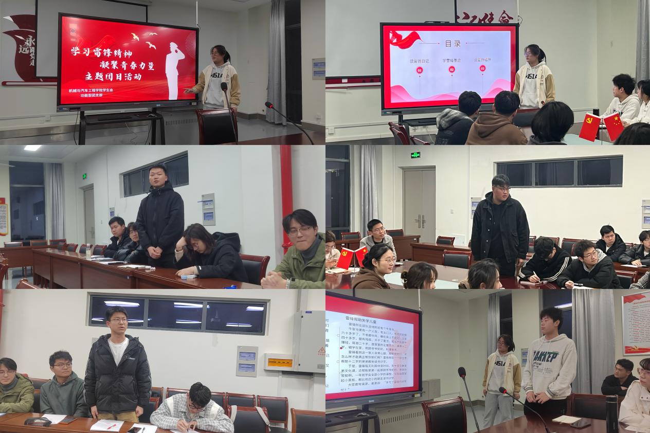 学习结束后,学生会功能型团支部召开“学习雷锋精神,凝聚青春力量”主题团日活动。理论宣传部张慧慧围绕“读雷锋日记、谈雷锋精神、学雷锋事迹”三个部分展开,从领读跟读到交流研讨,支部成员全神贯注、积极参与,纷纷表示将从点滴小事做起践行雷锋精神。此前,在学院团委、辅导员的指导下,各基层团支部已有序开展“学习雷锋精神,凝聚青春力量”主题团日活动。