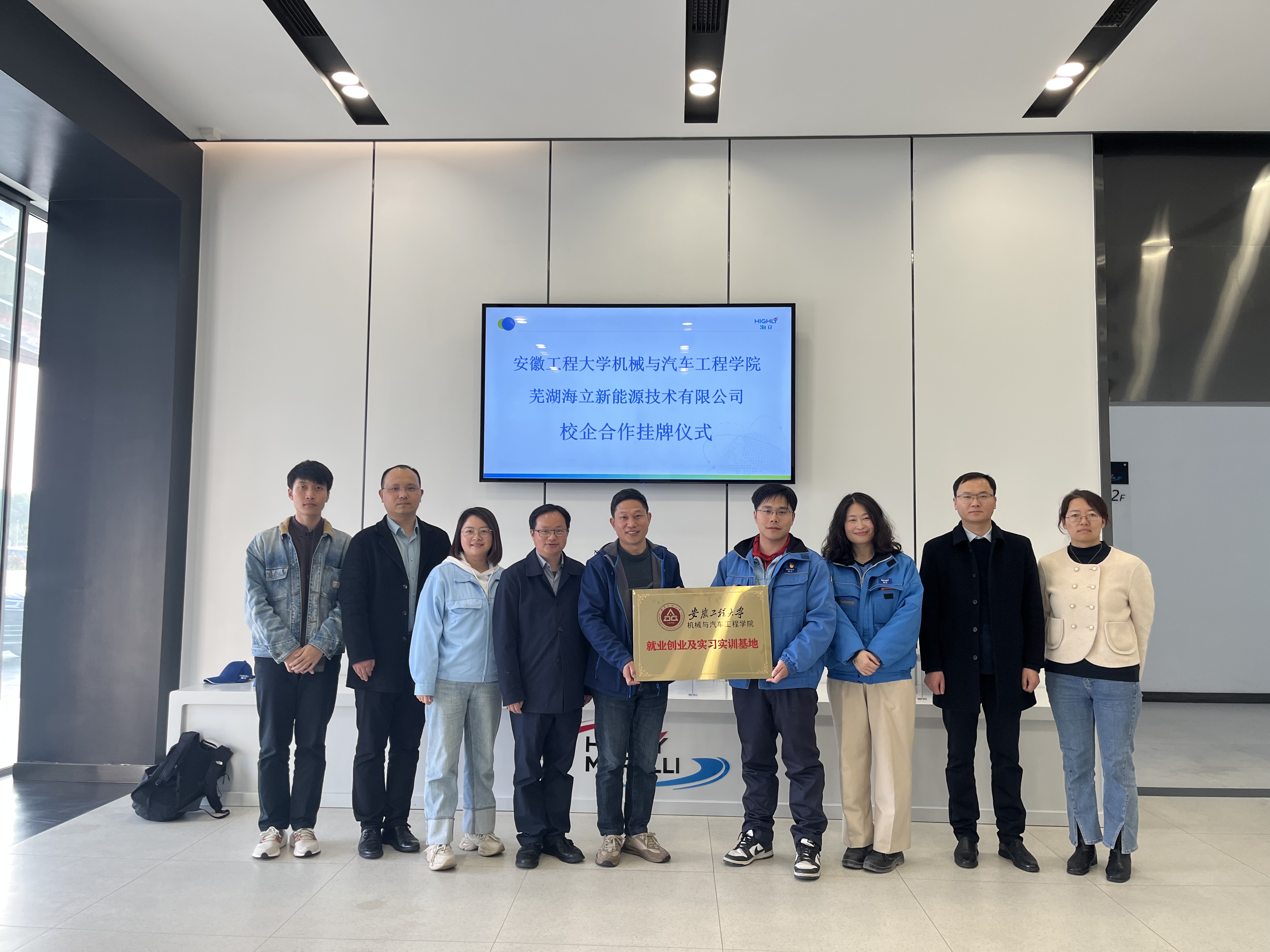 芜湖海立新能源技术有限公司是一家以空调设备制造与销售、汽车零部件及配件制造与批发等为主营业务的高新技术企业,拥有较强的自主创新能力与国内核心技术。座谈会上,海立新能源负责人详细介绍了公司的发展历程、业务范围、技术服务和人才需求等情况。王建彬、秦广虎分别介绍了学院发展历史、学科专业建设、师资队伍和人才培养等情况。双方就如何进一步加强校企合作、产教融合以及拓宽合作领域等方面进行了深入探讨,并签订了校企合作协议,挂牌“大学生就业创业及实习实训基地”。