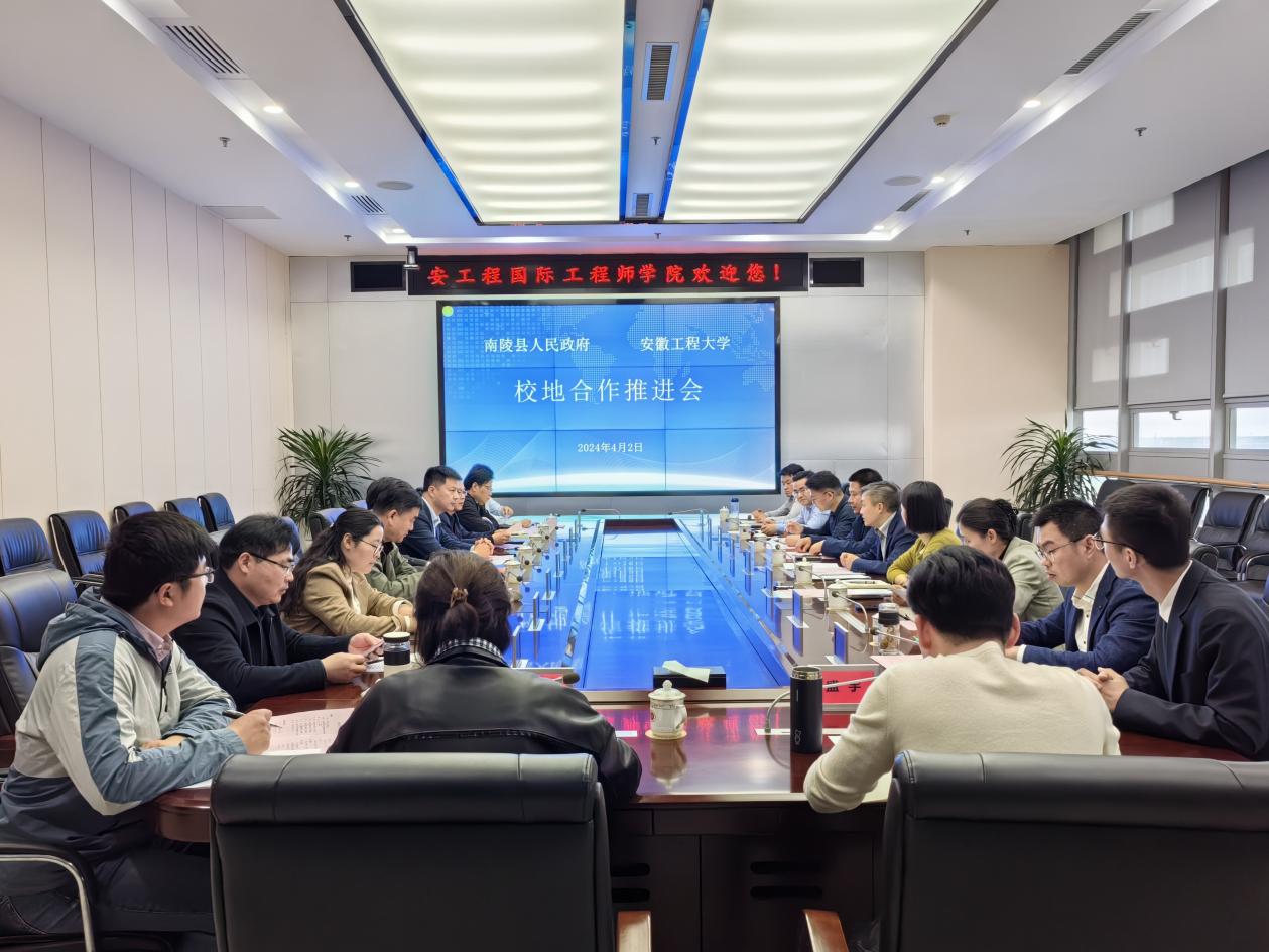4月2日,南陵县县委常委、组织部长王旸率县人社局、发改委、科技局、经信局、农业农村局等部门负责人及优秀企业代表来校洽谈校地合作。校党委常委、副校长凤权出席会议并讲话。洽谈会在国际工程师学院图文中心701会议室举行,社会合作处、科技处、百合漫画 、汽车现代产业学院、计算机与信息学院、人文学院、设计学院相关负责人参加。会议由社会合作处处长刘金斌主持。