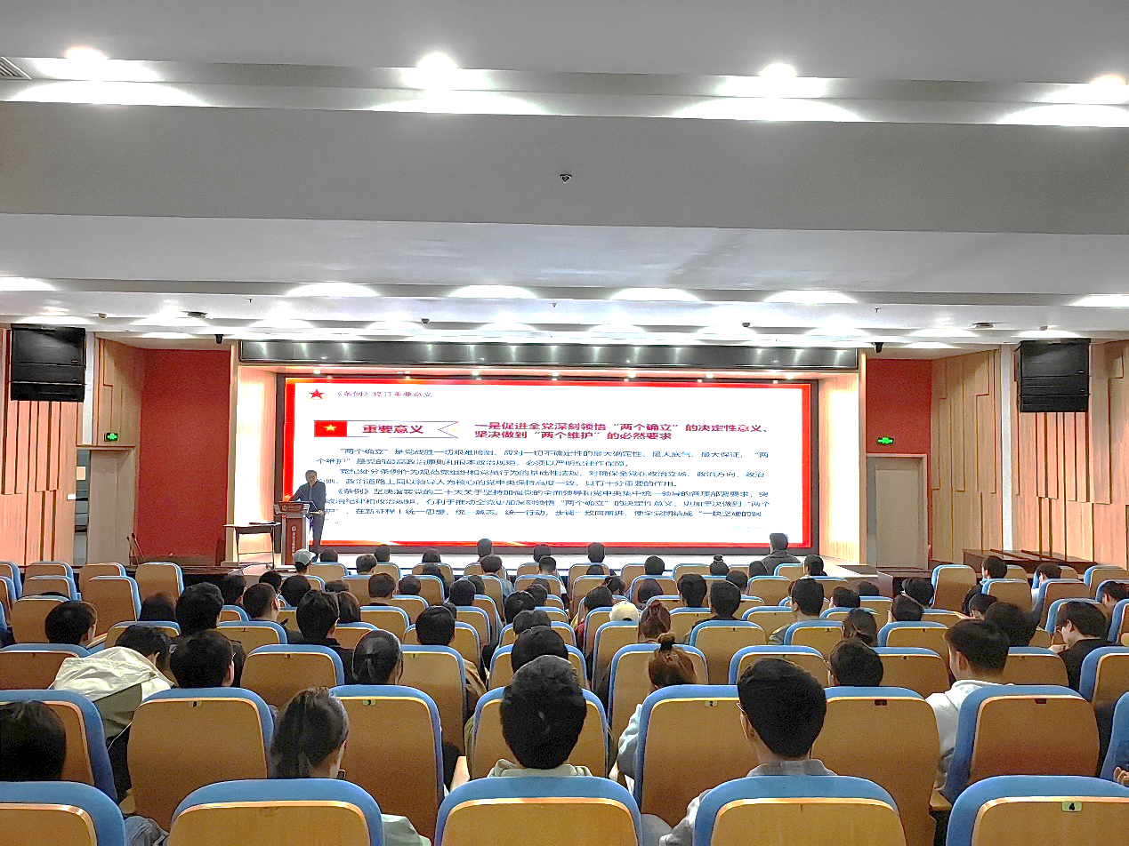 魏长顺从条例修订的重要意义、修订亮点解读、党纪学习教育的要求等三个方面进行授课。他强调此次条例的修订是促进全党深刻领悟“两个确立”的决定性意义、坚决做到“两个维护”的必然要求,是贯彻落实习近平新时代中国特色社会主义思想的具体行动,是坚持问题导向、用严明的纪律管全党治全党的现实需要,是总结从严管党治党经验、实现制度与时俱进的实践要求。他用各类违纪违法的现实案例对相关条款进行了解读,并警醒党员务必切实以案为鉴,时刻保持警醒自我,不断增强是非面前的辨别能力、诱惑面前的自控能力、警示面前的醒悟能力。