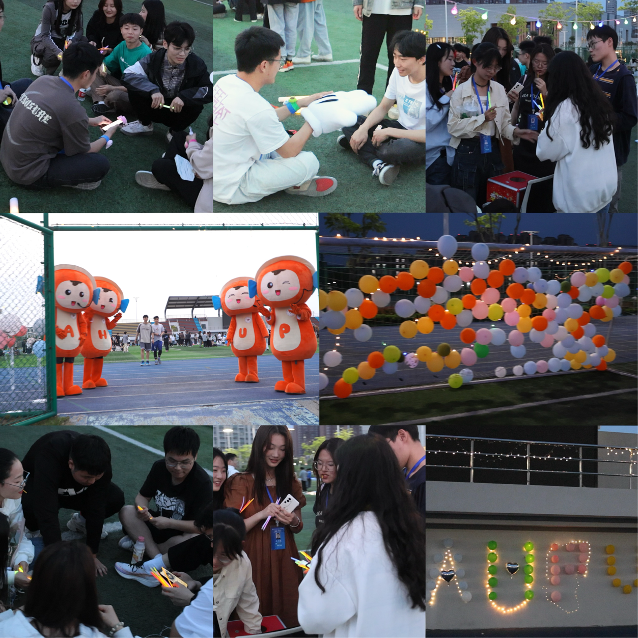 蓬勃朝气释放青春能量,游戏互动“乐”起来。从夜市区域出来,休闲区域和游戏区域便映入眼帘,精心装扮的足球门和操场围墙,穿着“AHPU”和小熊玩偶服的志愿者,欢乐有趣的各种游戏,实用精巧的各式礼品,让同学们眼花缭乱、兴致勃勃。在工作人员的指引下,他们积极参与、笑声不断,在漫步中感受校园的魅力,在游戏中感受团结的力量,在互动中感受友谊的美好,带着美好心情和游戏的胜利品继续探索其它有趣环节。