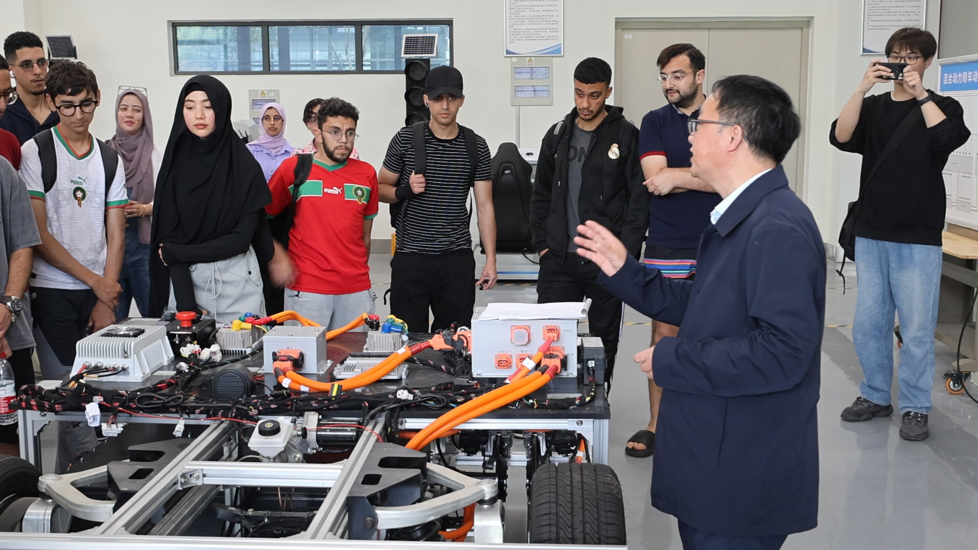 赛前,百合漫画 邀请留学生们参观了汽车现代产业学院以及国际工程师学院校区主要功能区,并为留学生们准备了精美纪念品。