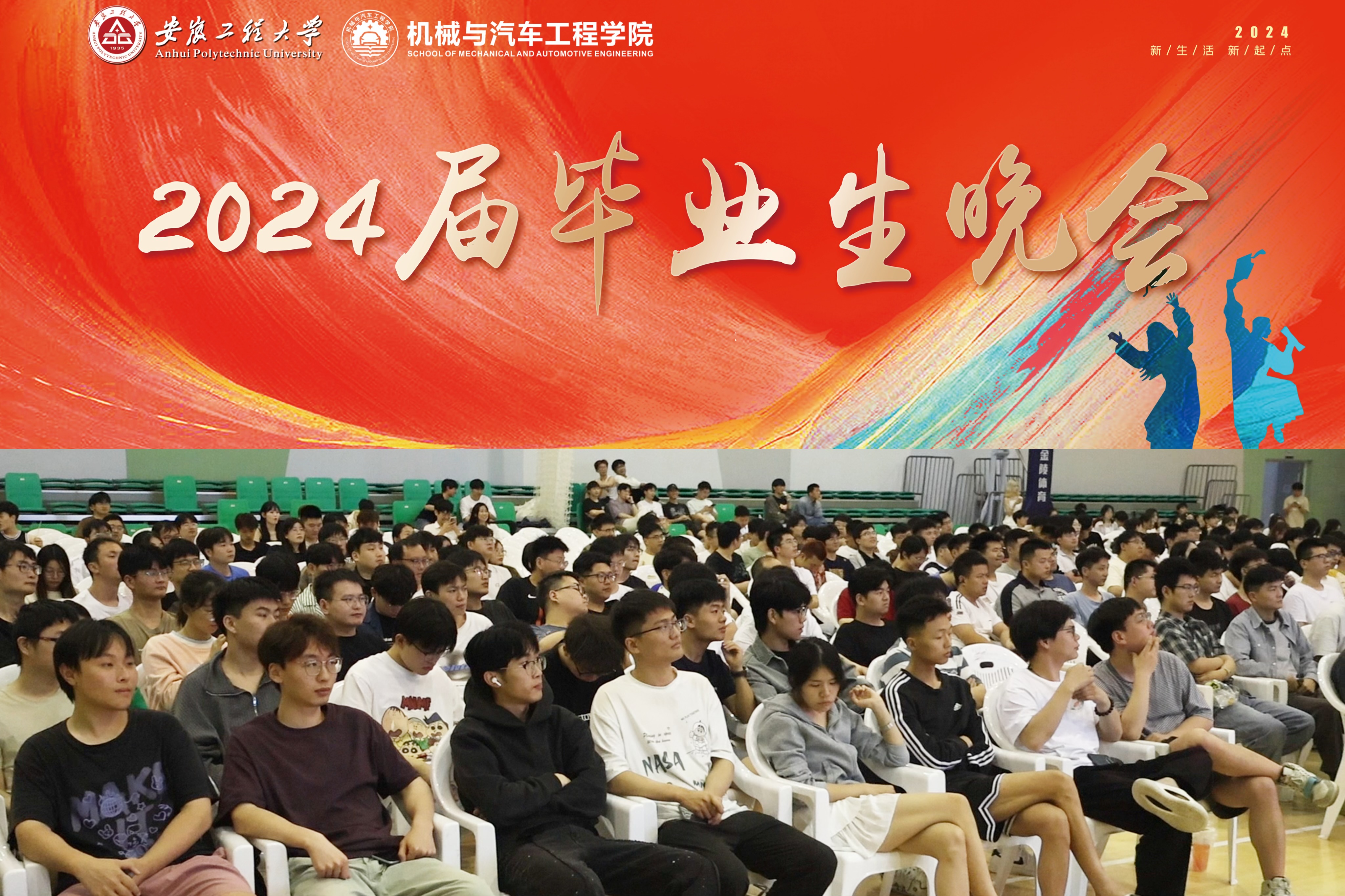 毕业晚会在全体工作人员和表演人员的合影中落下帷幕。此次晚会的成功举办,不仅为2024届毕业生留下了美好的回忆,亦丰富了新校区的校园文化。衷心祝愿全体2024届毕业生能够带着母校的祝福,勇敢追逐梦想,书写属于自己人生篇章。