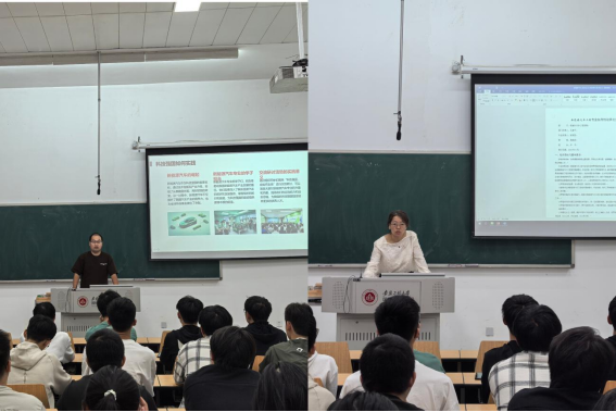 活动伊始,同学们集体观看《新能源汽车如何实现弯道超车》的视频,了解到我国新能源汽车发展状况。李乾坤带领班级同学开展了一场“新能源汽车未来发展趋势”的主题讨论,随后四位学生代表从专业学习、职业发展、个人价值实现等角度分享了各自的心得。