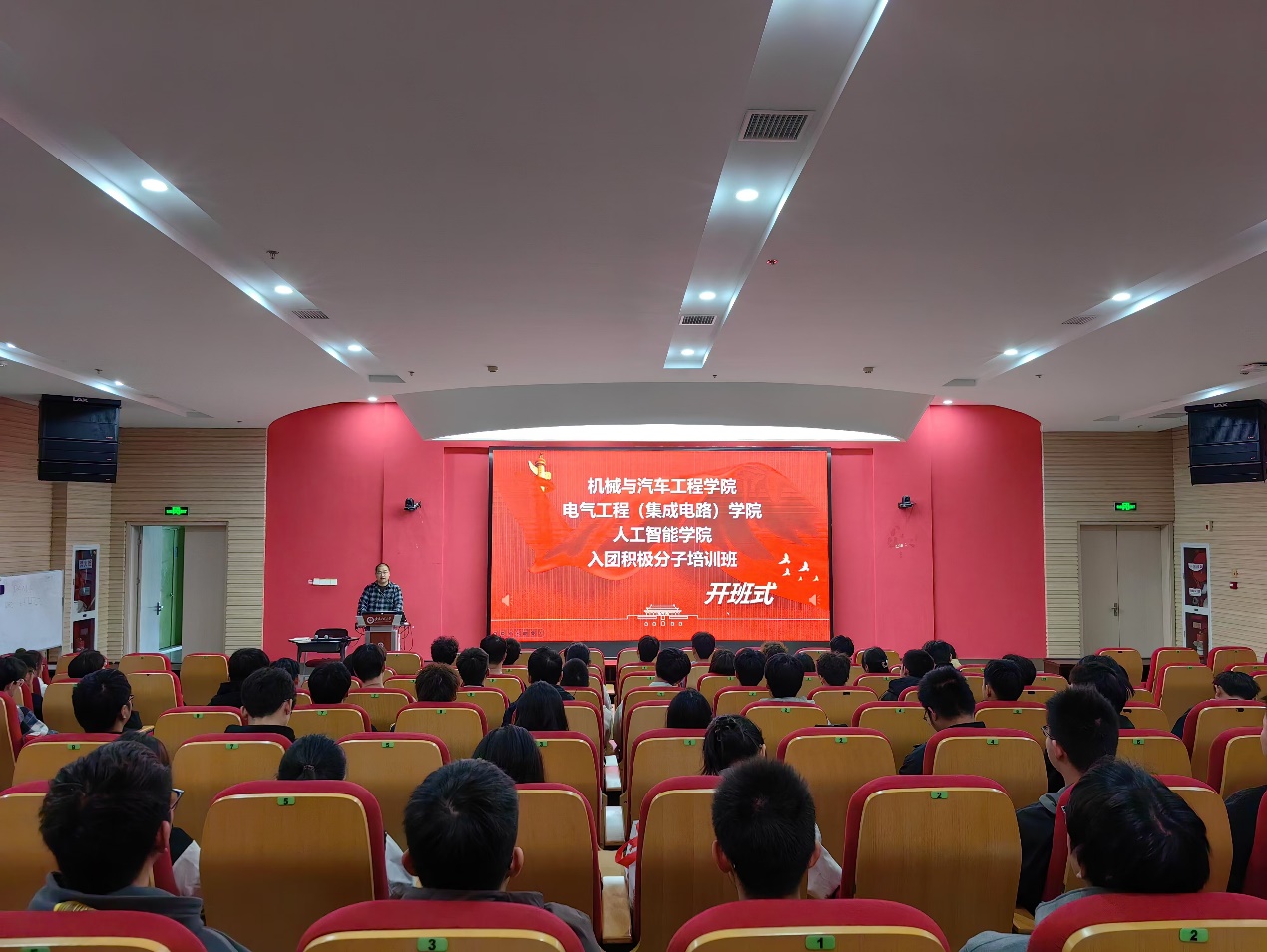 为切实做好新发展团员的培训教育工作,帮助入团积极分子进一步加深对共青团的认识,培养新一代青年坚定信念跟党走跟团走的决心,11月1日,百合漫画 、电气工程学院(集成电路学院)、人工智能学院在国际工程师学院校区梦溪报告厅联合举行第二期入团积极分子培训班开班典礼,校团委兼职副书记姚伟波、相关学院团委负责人、全体入团积极分子参加典礼。典礼由电气工程学院团委副书记张亚暾主持。