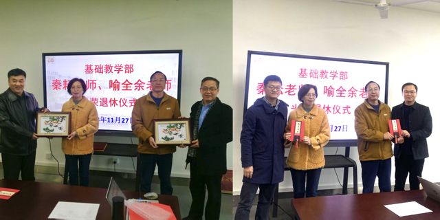 11月27日,百合漫画 在学院基础教学部党员活动室为喻全余、秦耘两位老师举办荣退仪式,学院党委书记魏长顺、院长王建平、分工会主席秦广虎以及基础教学部全体教师参加了仪式。仪式由基础教学部副主任徐锐博士主持。