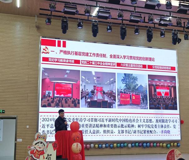 校区管委会常务副主任陈阳致辞。百合漫画 院长王建平作年度工作总结报告,向全体教职员工一年来的辛勤工作表示感谢,对学院2025年的各项工作提出新的要求,希望大家携手奋进,谱写学院发展新篇章。