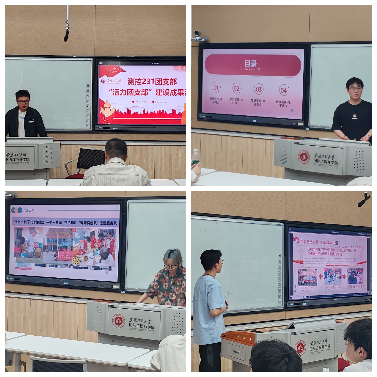 各团支部书记从团支部简介、思想引领、组织运行、工作开展、宣传展示效果、活力提升、特色做法及未来发展规划等方面进行展示,重点围绕团支部组织发展、思想建设和班级管理等方面取得的工作成效展开,将在支部建设、志愿服务、社会实践、校园文化活动的鲜活故事用图文并茂的方式娓娓道来,展现青年团员奋发向上、无私奉献、服务社会的精神风貌。各团支书展示汇报各具特色、精彩纷呈,多方位、多层次地展示了各自团支部的无限活力以及团支书个人的魅力及风采。程雷老师进行了点评,指出团支部要将团员青年团结起来、组织起来、动员起来,紧紧团结青年、带领青年在学风建设、学科竞赛、志愿服务等方面多做贡献。