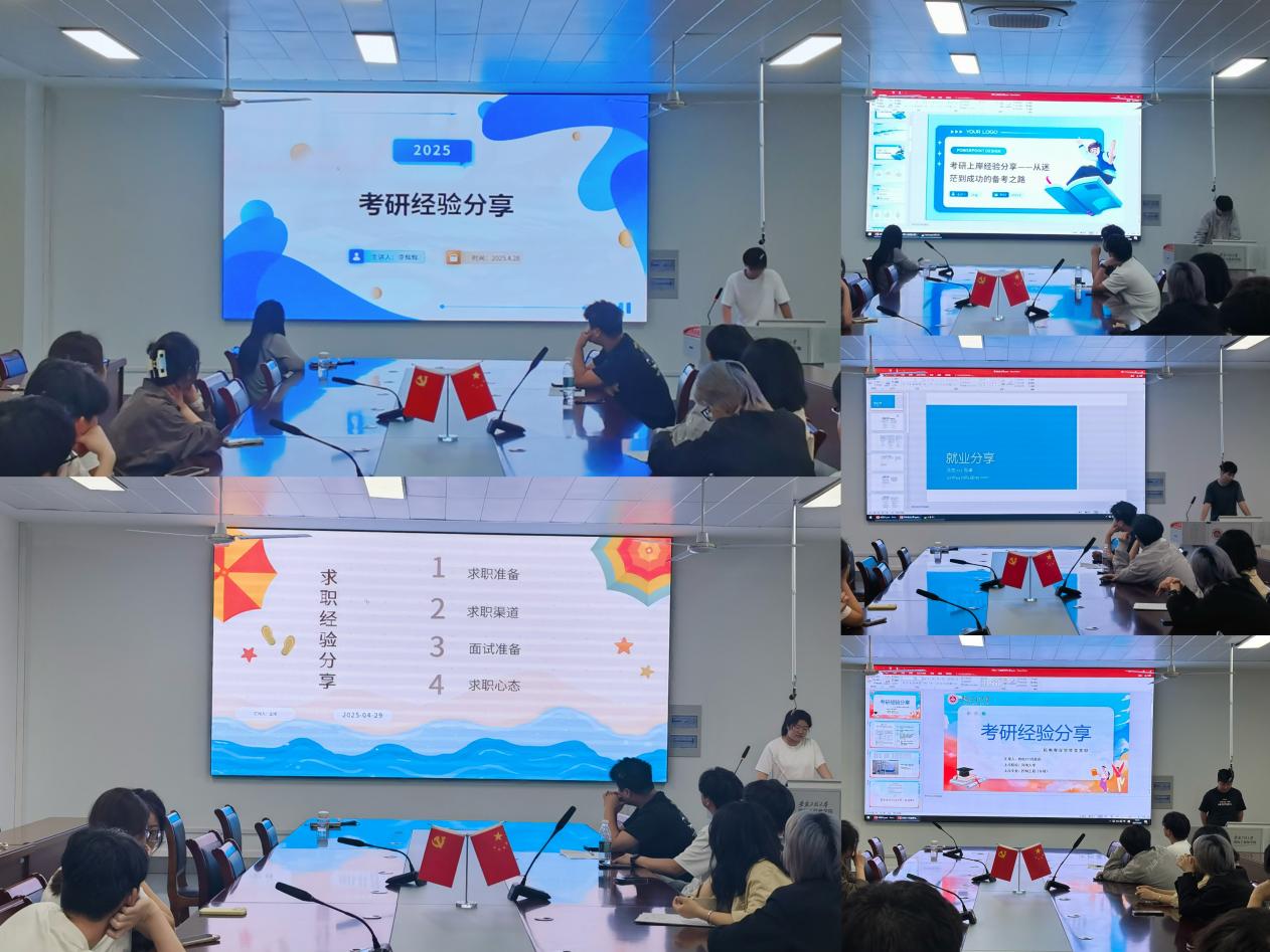 为充分发挥学生党支部的战斗堡垒作用,帮助低年级同学明确未来发展方向,掌握考研与就业的实用技巧。4月28日,测控专业学生党支部联合机电专业学生党支部在国际工程师学院校区实训楼3-1-204会议室开展考研就业经验分享会,支部党员、2022级和2023级部分学生参与其中。活动由测控专业学生党支部书记时慕天主持。