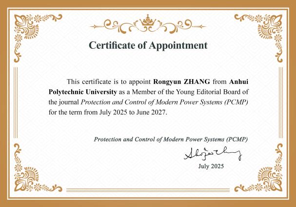 近日,经《电力系统保护与控制》杂志社编辑部初筛、专家委员会评审等严格程序,综合考虑学者学术水平、研究活跃度、专业领域代表性贡献,最终确定136位青年学者入选《Protection and Control of Modern Power Systems》(PCMP)首届青年编委,我院张荣芸教授入选。