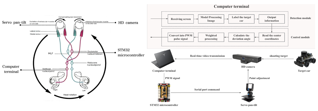 图1 人类前庭眼动反射构造和仿生云台系统框架结构
