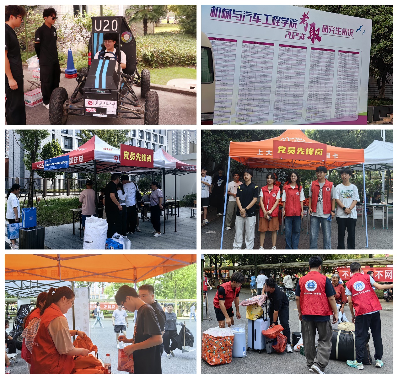 学院通过展示优秀学生培养光荣榜,帮助新生及家长更加深入的了解学院学生发展成效。报到现场,学院展示了获得2025中国汽车工程学会巴哈大赛的参赛车辆,赛车体现了科研育人和竞赛育人的成果。赛车从设计、焊接、加工、装配到试验测试等环节,均由学生完成,生动展现了学院在高质量应用型人才培养方面的扎实成效。新生在现场积极向高年级学长咨询赛车车辆的详情,亲身乘坐体验,在可触可感中感知顶尖赛事和学科专业的魅力。学院党政班子成员、各系部教师代表、相关兼职辅导员主动为新生及家长解答困惑,介绍个性化人才培养方案,让学生一进校门就种下勤奋拼搏的种子,引导新生根据个体兴趣、特长以及未来发展方向规划个人大学生活。