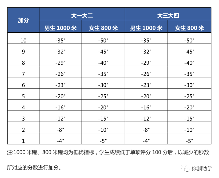 2. 中长跑 (男生1000米,女生800米,单位:分·秒)