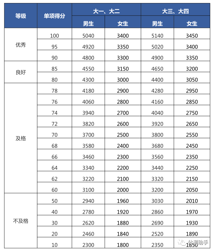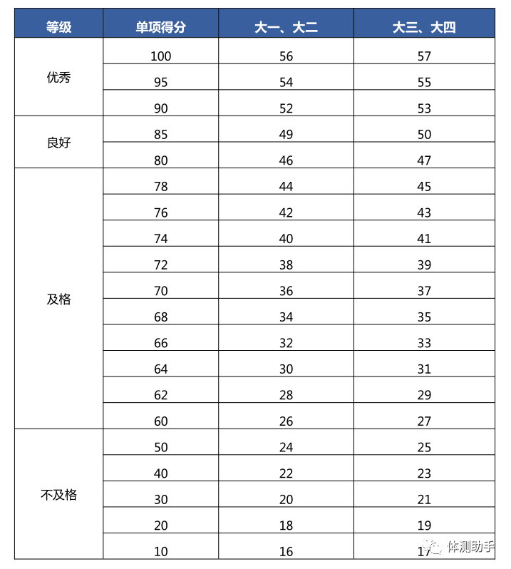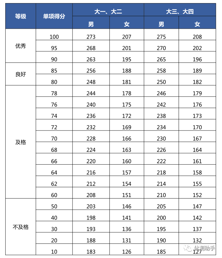 《国家学生体质健康标准》是测量学生体质健康状况和锻炼效果的评价标准,是国家对不同年龄段学生体质健康方面的基本要求,是学生体质健康的个体评价标准。以下为大学生体测各项目相应的评价指标。
