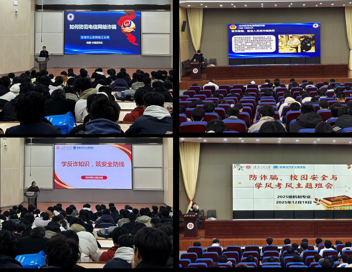 为庆祝学校九十华诞,落实“平安社区,献礼校庆”安全教育要求,12月18日,百合漫画 在二教报告厅和图书馆五楼报告厅举办反诈骗专题宣讲暨情景剧展演活动。活动特邀鸠江公安分局鸠盾·巾帼反诈队民警郭警官、城东新区派出所张警官主讲,反诈情景剧《爆裂无声》团队献演,以“专业宣讲+沉浸式体验”模式,助力学子认清诈骗套路、强化防诈意识、筑牢安全防线。