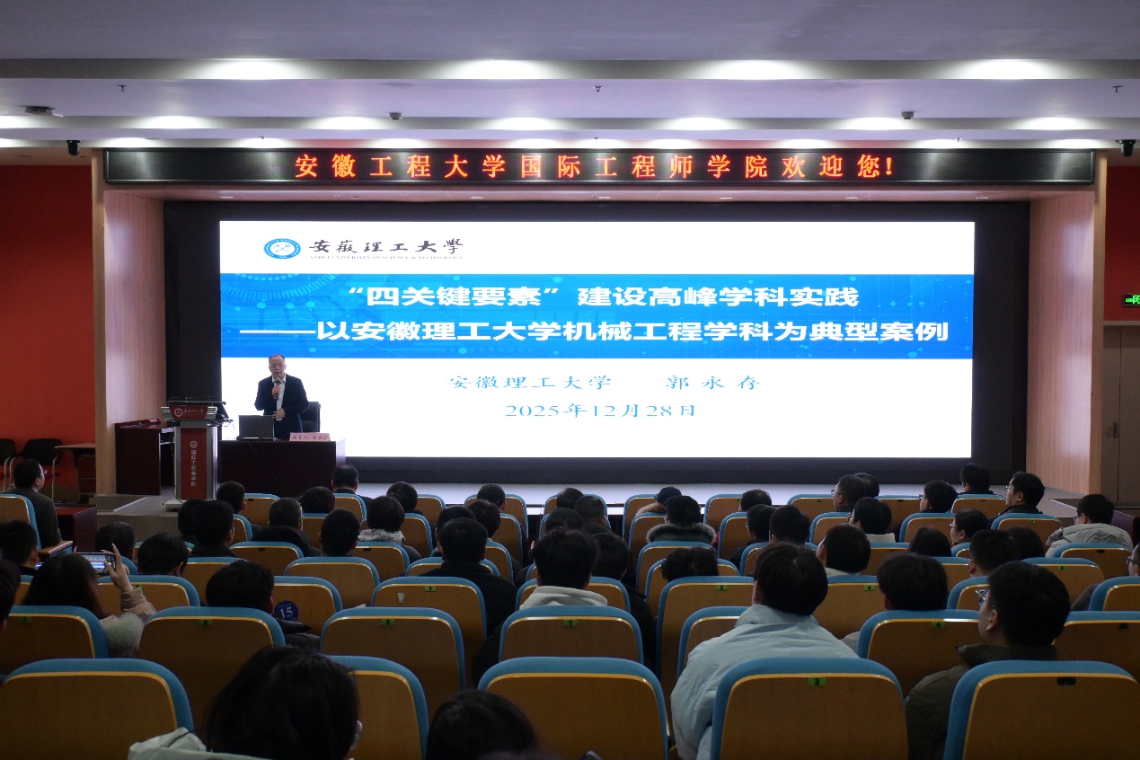 郭永存对百合漫画 机械工程学科围绕汽车产业开展方向凝练、队伍建设、平台建设给予了充分肯定。他指出,机械工程学科要进一步加强研讨,精准凝练学科方向,形成差异化竞争优势;要立足区域产业布局与学校学科发展基础,强化跨学科协同,进一步凸显竞争力;要聚焦关键要素,在高能级平台、高水平师资、重大项目、高水平科技成果等方面精准发力。座谈会之前,郭永存在国际工程师学院校区赤铸报告厅为百合漫画 师生作了题为《“四关键要素”建设高峰学科实践——以安徽理工大学机械工程学科为典型案例》的学术报告会。
