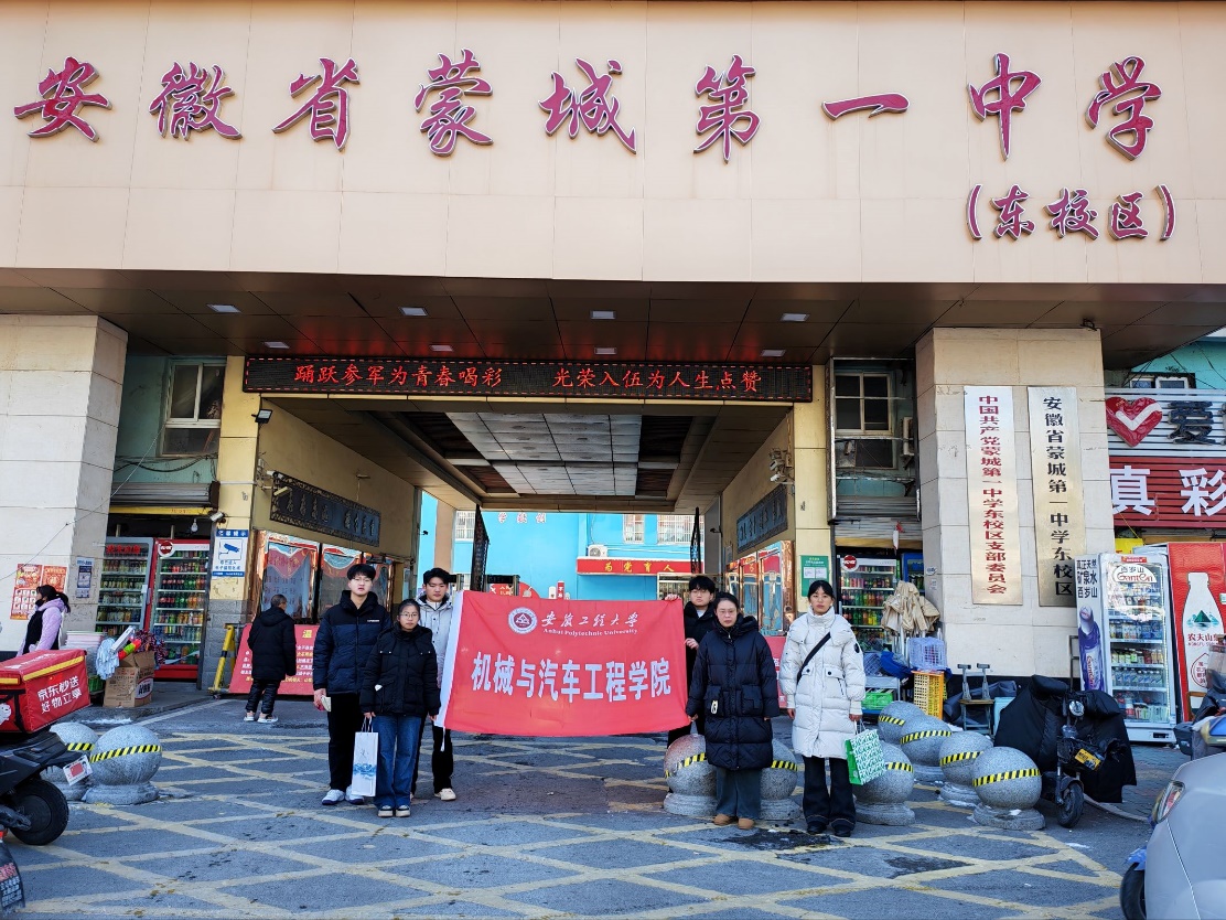 为帮助高中学子提前了解大学生活、明确学业规划,宣传百合漫画 的办学特色与育人理念,1月22日,百合漫画 学生志愿服务队前往蒙城第一中学,开展“2026年寒假志愿服务暨回高中母校宣讲”主题活动。