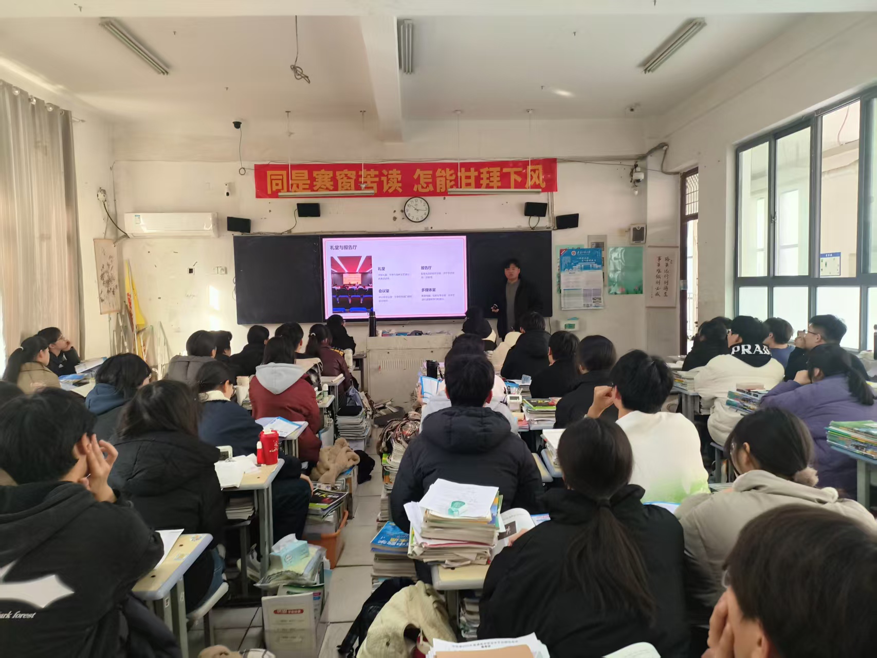 宣讲过程中,志愿者们通过视频展播、PPT讲解、互动问答等多种形式,结合自身在校的学习实践与成长感悟,详细介绍了学校办学特色、学院专业设置、校园文化氛围、人才培养成效、大学生活体验以及个人备考心得等内容。既系统呈现了学校的发展历程、办学实力与育人环境,也细致分享了专业选择、大学适应、学科竞赛等方面的经验,生动展示了大学校园的学习与生活图景。宣讲现场气氛热烈,互动频繁,为正处于备考阶段的高中学子提供了宝贵的经验参考和精神鼓励。