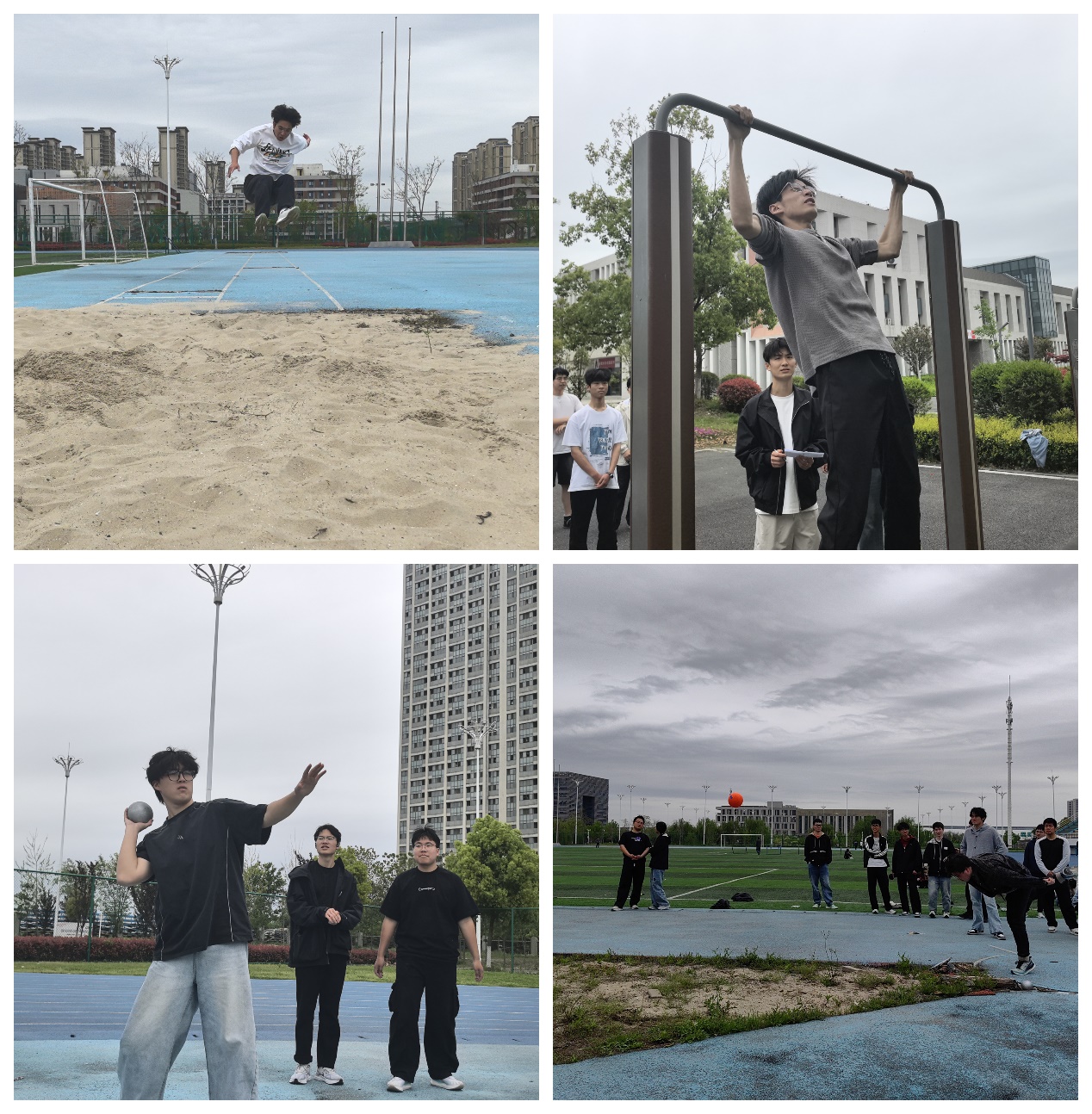 跳远选手助跑、踏跳、腾空——动作一气呵成,沙子飞溅的那一刻,赞许比成绩出来得还快。铅球和实心球区域则是“吨位级”较量。选手们凝神聚气,猛一转身,球在空中划出一道漂亮的抛物线,落地“砰”的一声,引来一片“牛啊兄弟”。引体向上更是硬核中的硬核。一个、两个、三个……下巴过杠才算数,胳膊抖了也不肯松手。围观同学自动化身计数员和啦啦队,“再来一个!”“你可以的!”喊得比选手还卖力。