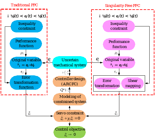 图1 传统PPC与非奇异PPC控制方法比较 图2 四旋翼无人机非奇异预设性能控制架构